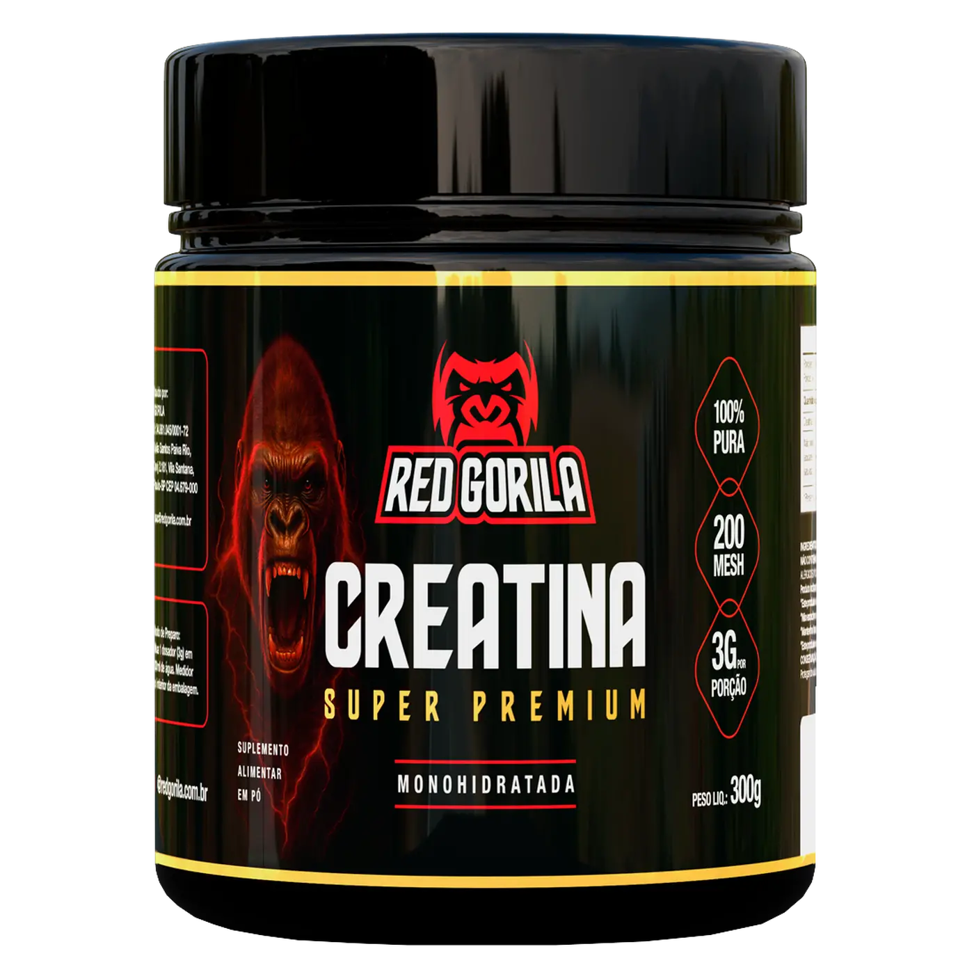 A Creatina Super Premium Red Gorila é 100% pura, com laudo de qualidade e micronizada à 200 mesh. Isso garante partículas menores, melhor absorção e biodisponibilidade superior, potencializando força, energia e desempenho nos treinos.